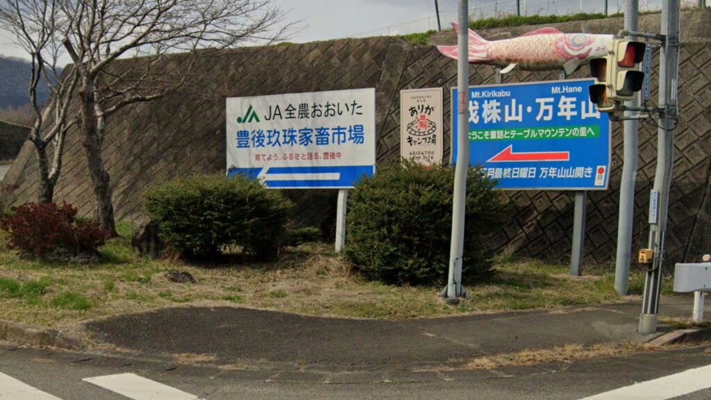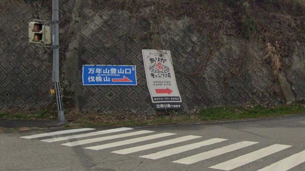 玖珠 IC・久留米方面からの目印看板(この看板を▶︎右折)